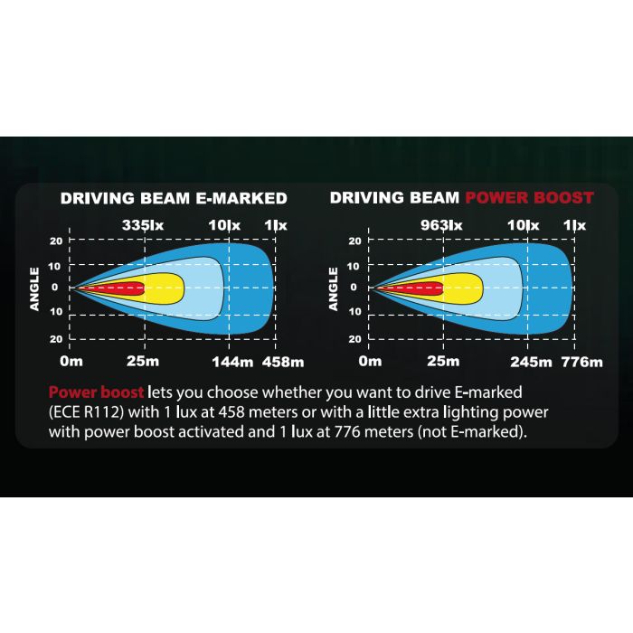 - Beam range in ECE mode: 458 m (1 lux)