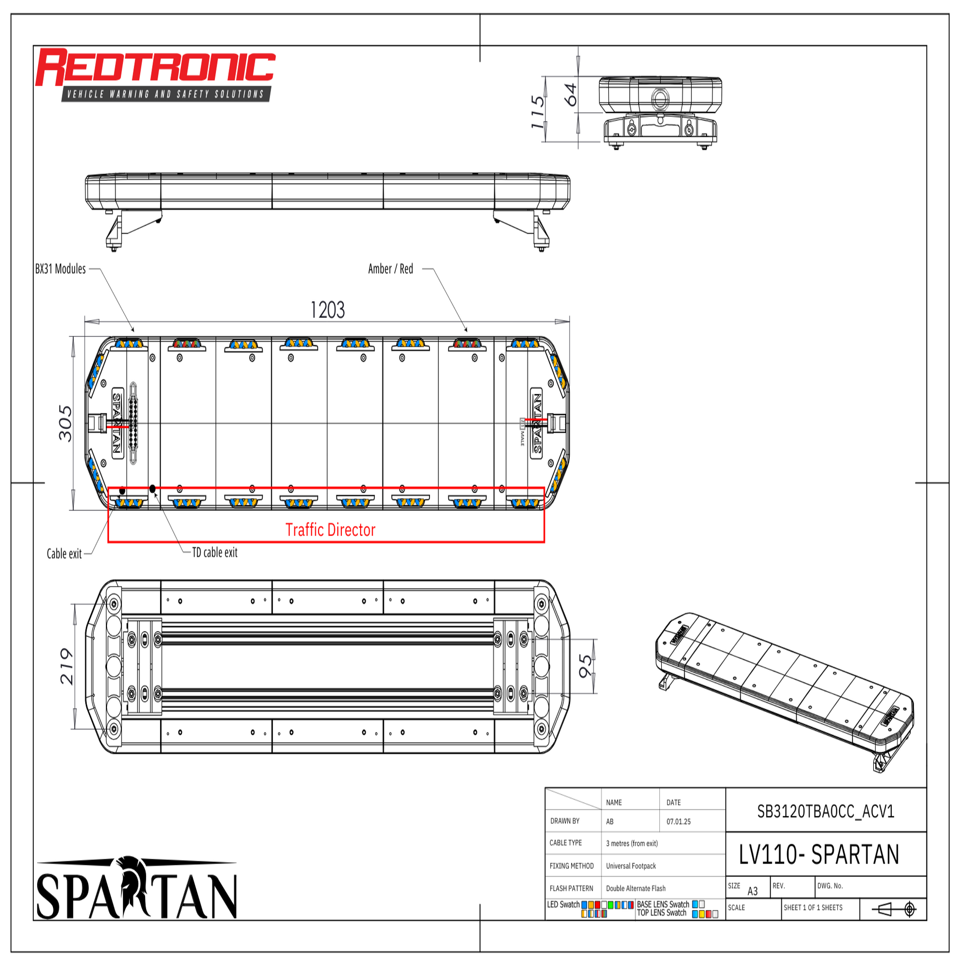 Redtronic Spartan 1203mm / Blue-Yellow / Red / Traffic Director / Alley / 20 modules